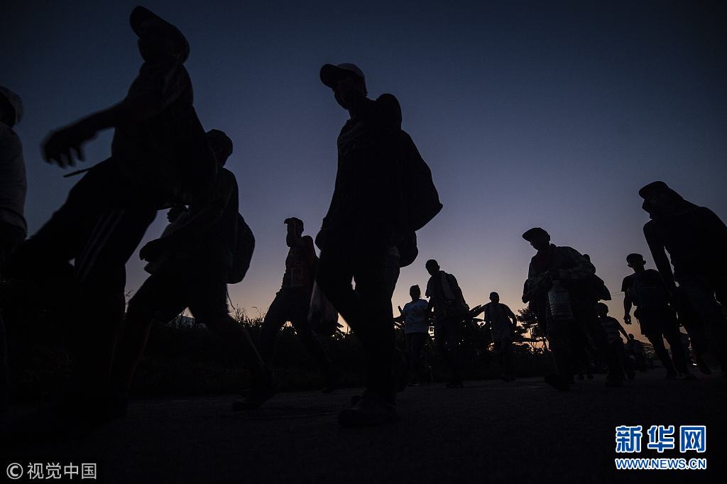 当地时间2018年10月24日,墨西哥恰帕斯州维斯特拉,洪都拉斯移民持续向美墨边境前进。成千上万的洪都拉斯移民前往美国,美国总统唐纳德·特朗普称这是“对我们国家的攻击”。在墨西哥恰帕斯州的惠斯特拉休息一天后,他们继续前往美国。(图片来源:视觉中国)