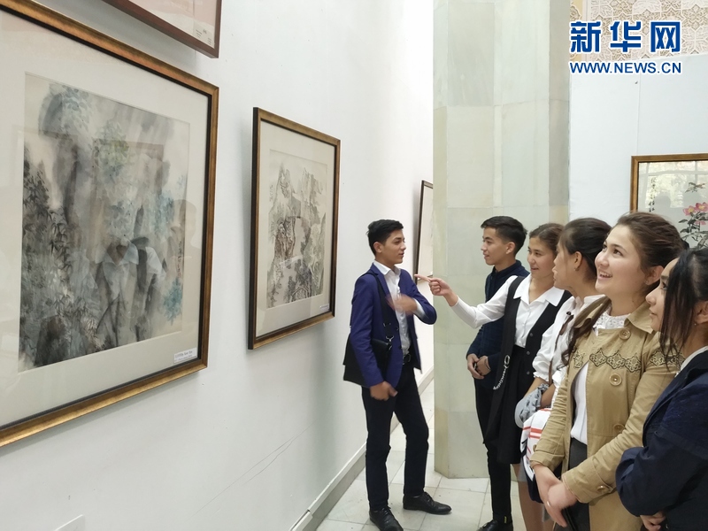 新华网塔什干10月25日电(记者蔡国栋)24日,中国与乌兹别克斯坦人文艺术交流展暨中国杭州画院“一带一路”艺术展在乌兹别克斯坦首都塔什干的国家艺术科学院开幕。在国家艺术科学院一楼大厅的墙壁上,悬挂了大小七十余幅来自中国的山水、人物肖像绘画,吸引了众多当地艺术爱好者和学生驻足参观。