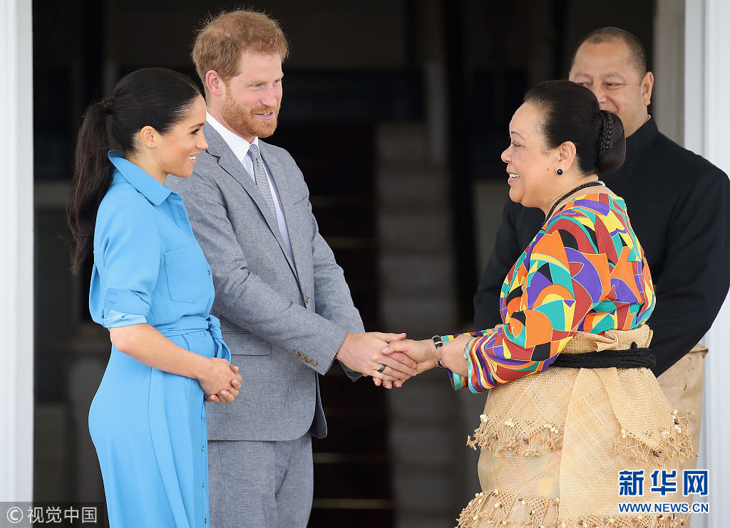 当地时间10月26日,哈里王子夫妇访问汤加王国,会见汤加国王图普六世和娜娜茜帕乌王后。(图片来源:视觉中国)