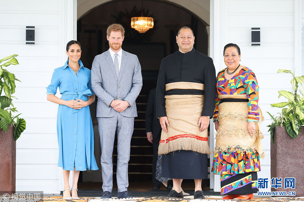 当地时间10月26日,哈里王子夫妇访问汤加王国,会见汤加国王图普六世和娜娜茜帕乌王后。 (图片来源:视觉中国)