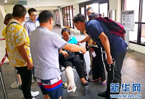 在机场等候的中国乘客秩序井然,许多人举着国旗合影,非常兴奋。一位在塞班开店的王女士脚部骨折,因当地医疗条件有限,她向领馆寻求帮助,经领馆协调,也顺利搭上川航飞机回国。