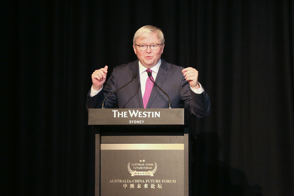 陆克文在论坛上用中文发表主旨演讲。(图片由主办方提供)