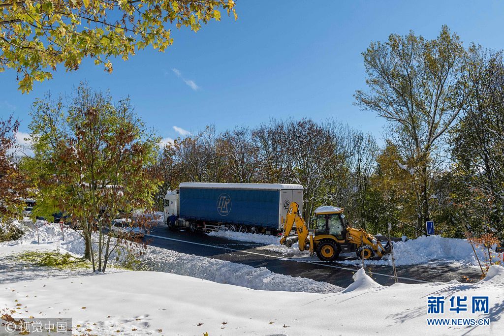 当地时间2018年10月30日,法国菲克斯圣热内,当地突降大雪,法国国家气象局已经将当地置于橙色安全警戒之下。(图片来源:视觉中国)