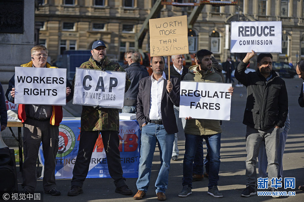 当地时间2018年10月30日,英国伦敦,包括Uber司机、快递员等数百名示威者上街游行,要求提升工人权利。 (图片来源:视觉中国)