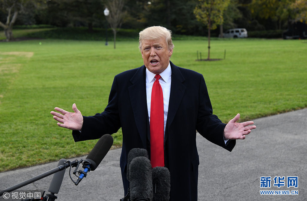 当地时间2018年10月31日,美国华盛顿,美国总统特朗普启程前往佛罗里达州出席竞选集会,在白宫南草坪发表讲话。特朗普称,计划部署在美墨边境的现役军人数量或增加至15000人,以严防来势汹汹的“大篷车”移民。(图片来源:视觉中国)
