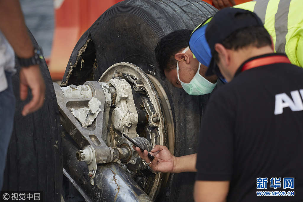 11月3日,印尼雅加达,印尼狮航客机坠海搜救进入第六天,印尼失事客机部分残骸陆续打捞上岸。印尼国家搜救局2日表示,目前狮航失事客机的起落架、轮胎都已经打捞上岸。同时,遇难者遗体身份确认工作也在进行中。(图片来源:视觉中国)