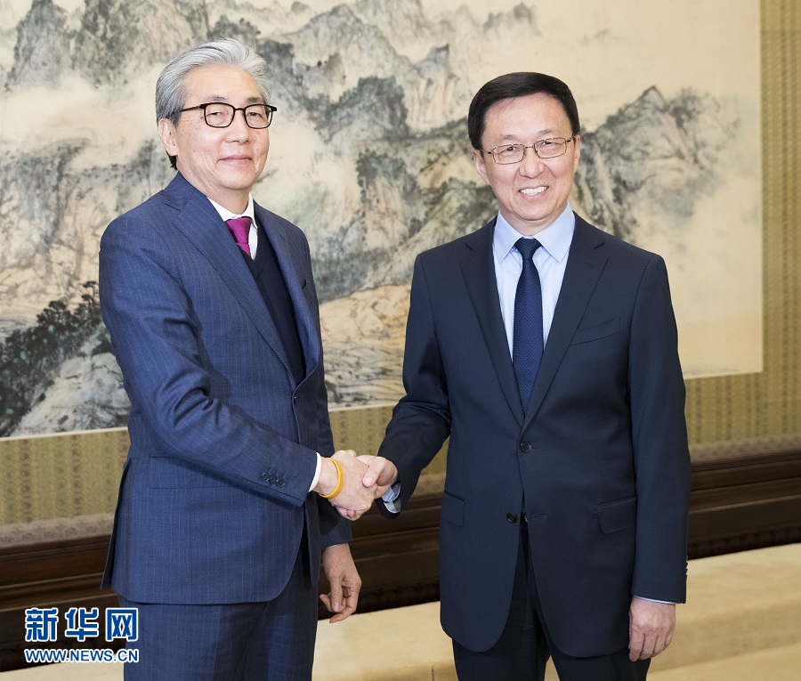 11月6日,中共中央政治局常委、国务院副总理韩正在北京中南海紫光阁会见泰国副总理颂奇。 新华社记者 黄敬文 摄