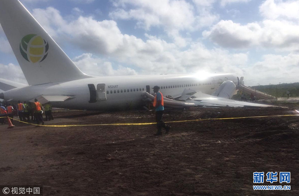 一架客机在圭亚那机场紧急着陆时冲出跑道