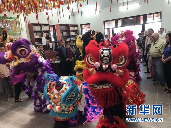 醒狮起舞贺庆典。 新华网发 吴启昌摄