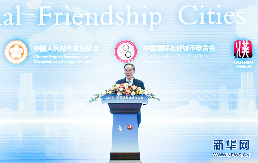 新华社武汉11月15日电(记者 廖君)2018中国国际友好城市大会15日在武汉开幕。国家副主席王岐山出席开幕式并做主旨发言。