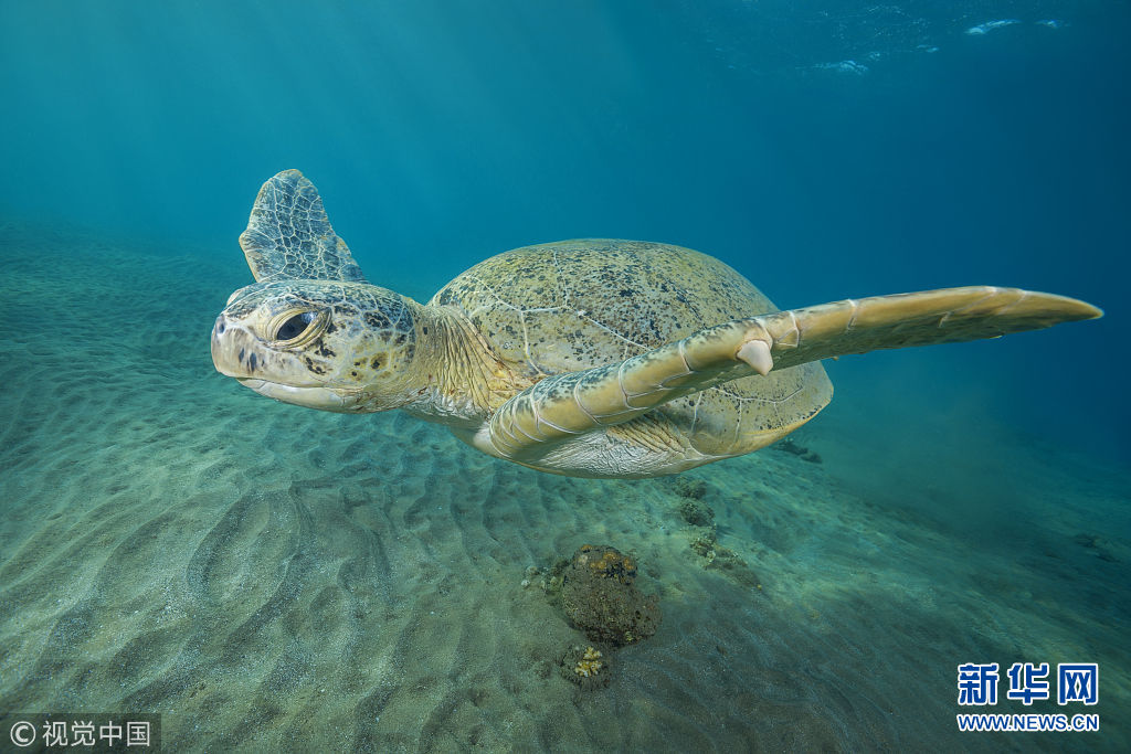 实拍红海水下景观 海龟水中悠闲畅游