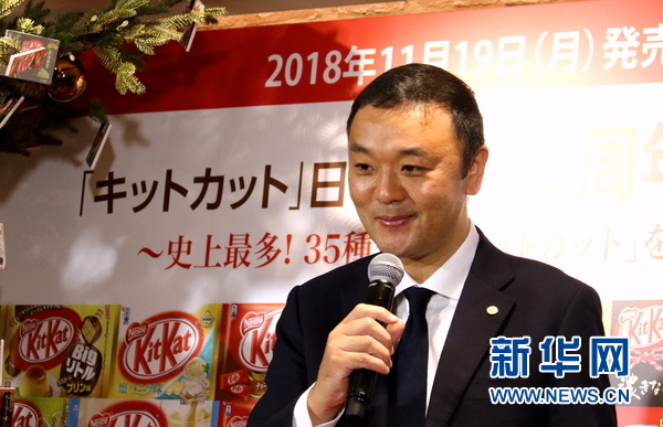 图为雀巢日本株式会社糕点事业本部市场营销部长竹内雄二在庆祝仪式上致辞。新华社记者 彭纯 摄