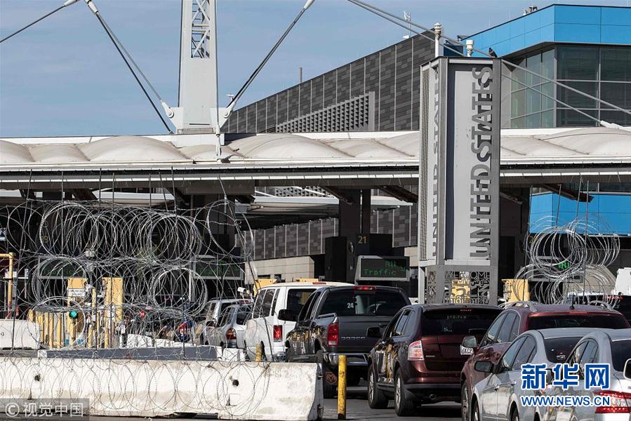 当地时间2018年11月15日,墨西哥提华纳,部分“大篷车”移民抵达美墨边境,美国士兵加高边境墙布置铁丝网防止移民入境。 (图片来源:视觉中国)