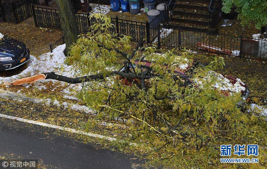 纽约今冬初雪比预期严重 压垮路边树木