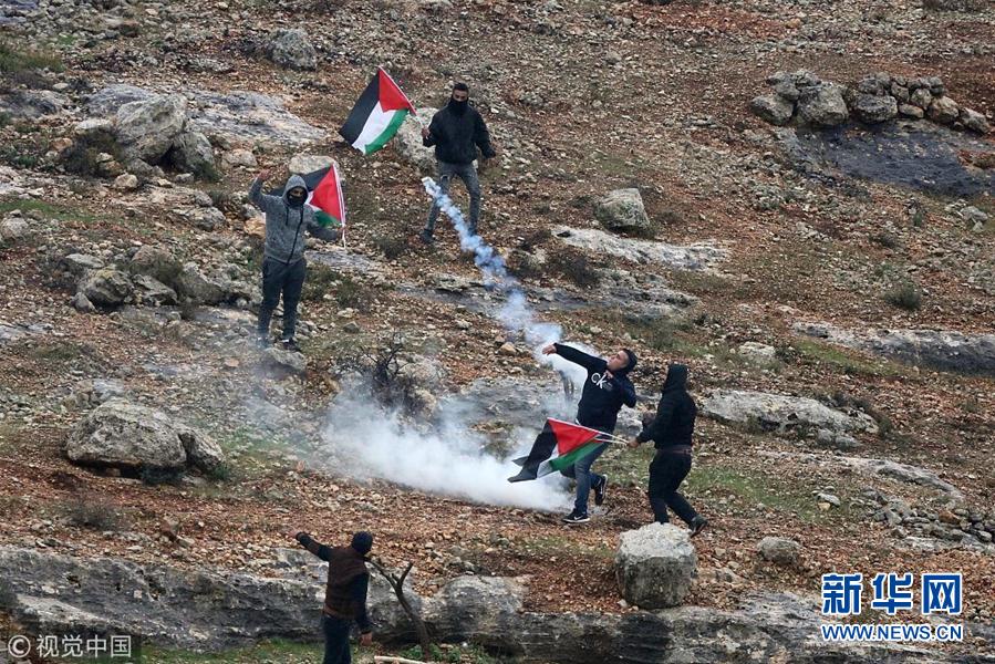 巴勒斯坦人抗议以色列没收巴土地 与以士兵发生冲突