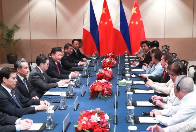 11月21日,国家主席习近平在马尼拉会见菲律宾众议长阿罗约和参议长索托。新华社记者 庞兴雷 摄