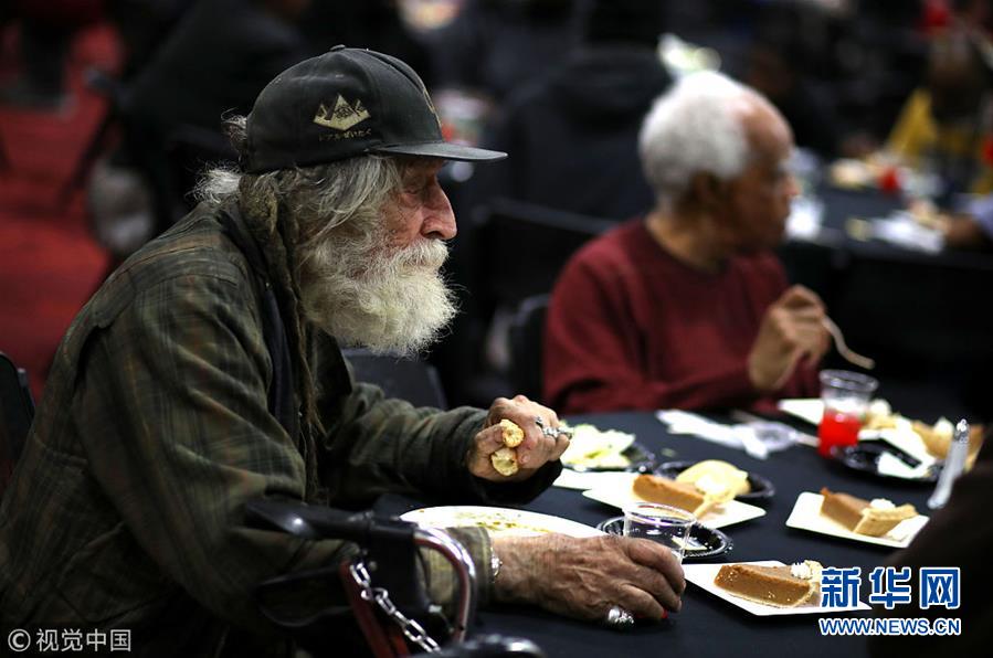 当地时间2018年11月20日,美国加利福尼亚州奥克兰市,当地举办第27届感恩节晚宴,为需要帮助的人提供免费食物。(图片来源:视觉中国)