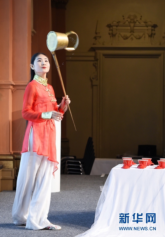 11月20日,一名演员在现场为嘉宾进行茶道表演。新华社记者 逯阳 摄