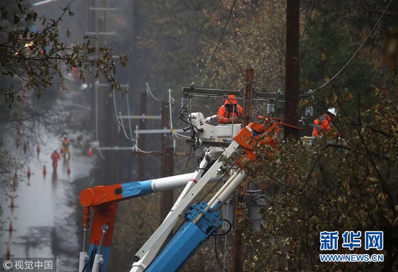 当地时间2018年11月21日,美国加州天堂镇,当地正在进行大火过后的修复工作。截至当地时间20日晚,山火造成的死亡人数上升到84人,其中加州北部的死亡人数为81人,而失踪者近700人。天气预报显示,当地时间21日,北部山区的林火火灾区域将迎来一场降雨,这将有助于灭火。但同时,也会增加搜索工作的难度。为此,救援人员在20日加大搜索力度,争取在降雨前完成更大范围内的搜索工作。(图片来源:视觉中国)