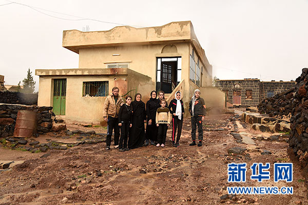 在叙利亚南部苏韦达省舍比克村,阿布·阿马尔一家站在自家房前合影(11月14日摄)。新华社发(胡马姆 摄)