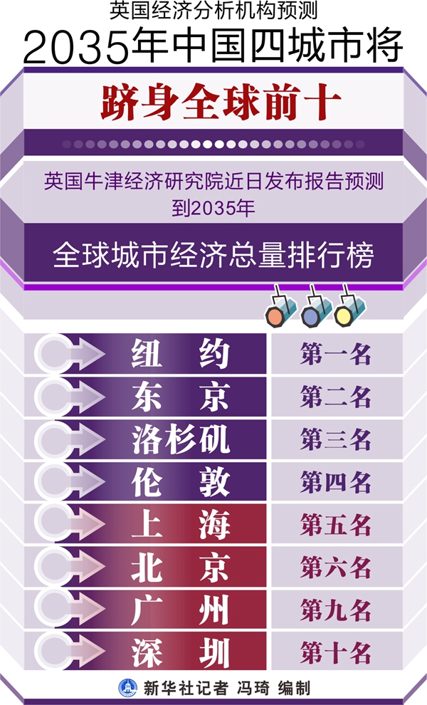 英国经济分析机构预测2035年中国四城市将跻身全球前十 新华社记者 冯琦 编制