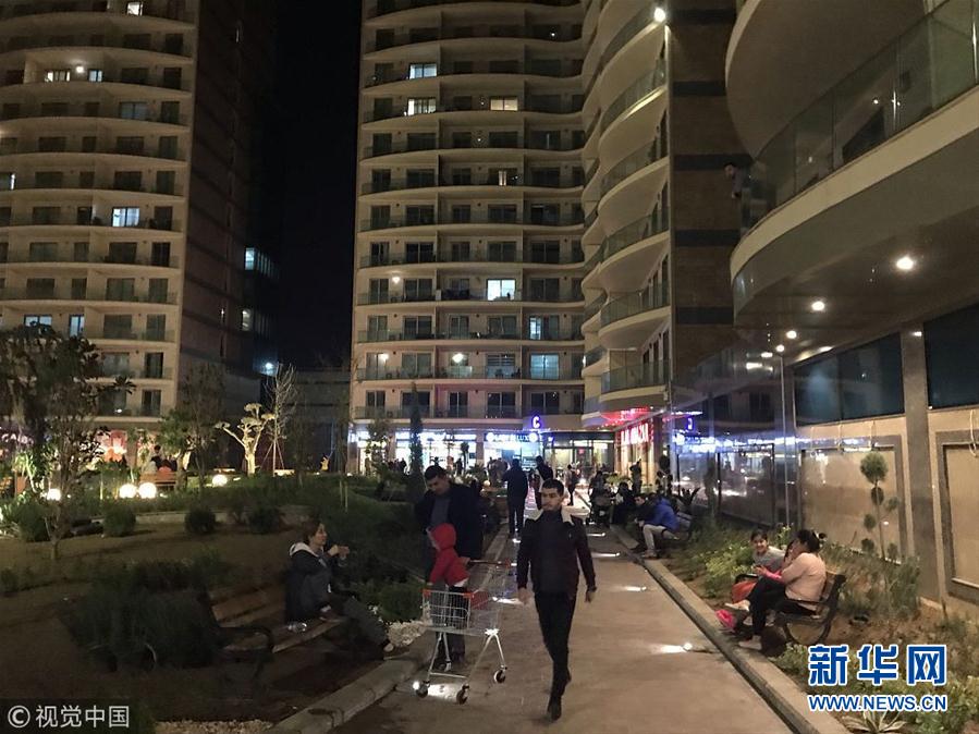 2018年11月25日,伊拉克埃尔比勒,民众在建筑外避难。伊朗西部克尔曼沙阿省25日发生6.4级地震,伊拉克震感强烈。(图片来源:视觉中国)