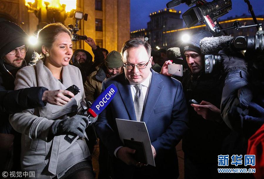 当地时间2018年11月26日,俄罗斯莫斯科,俄罗斯外交部召见乌克兰驻莫斯科临时代办尼姆钦斯基。乌克兰及其西方盟友要求俄罗斯释放俄扣留的三艘船只。(图片来源:视觉中国)