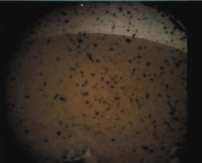 “洞察号”着陆后,传回的首张火星照片。