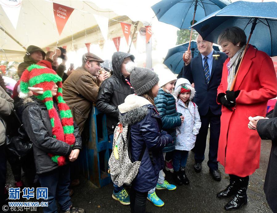 当地时间2018年11月27日,英国波厄斯郡,英国首相特雷莎·梅参观皇家威尔士冬季交易会。11月27日,英国首相特雷莎·梅开始进行全国视察,以争取民众对于“脱欧”协议的支持。(图片来源:视觉中国)