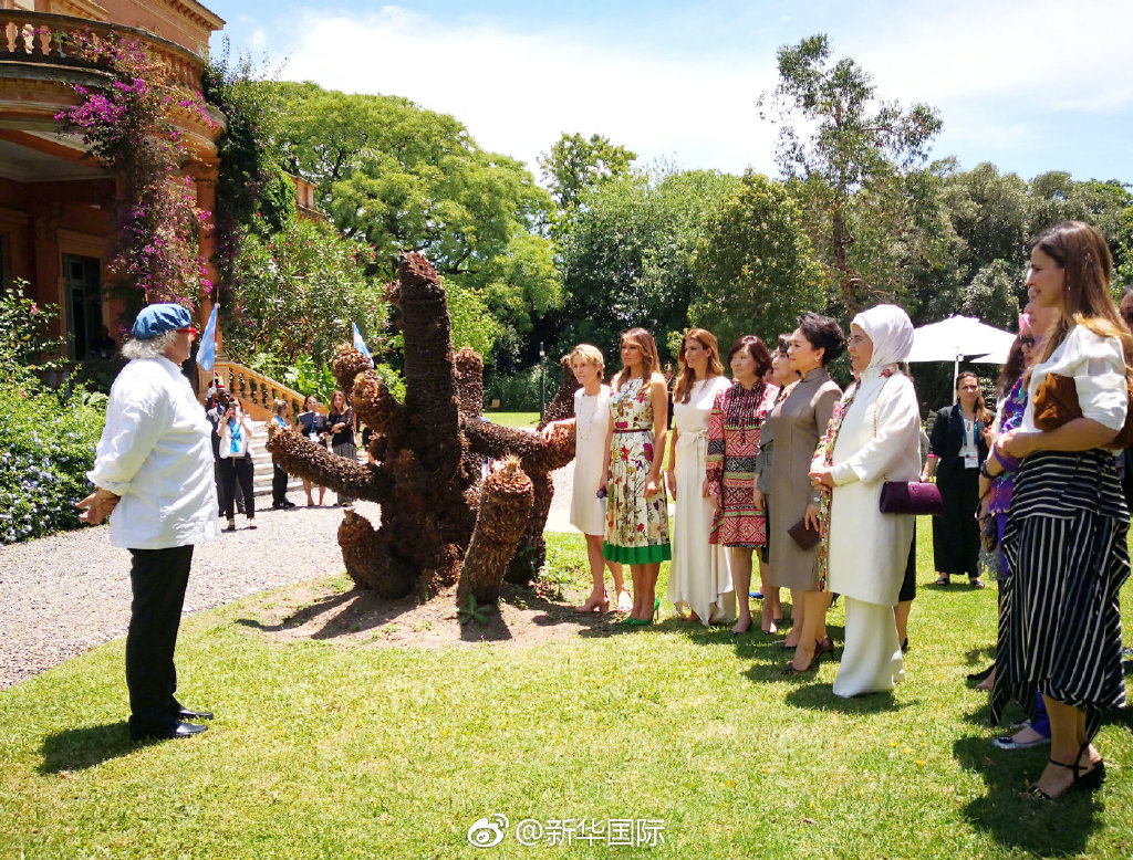 绿草如茵,落英缤纷。当地时间11月30日上午,应阿根廷总统马克里夫人阿瓦达邀请,国家主席习近平夫人彭丽媛同出席二十国集团领导人第十三次峰会的部分国家领导人配偶来到阿根廷著名女作家奥坎波故居参观。