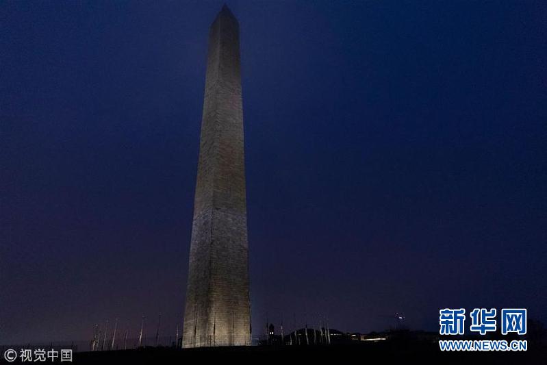 当地时间2018年12月2日,美国华盛顿,华盛顿纪念碑降半旗,悼念美国前总统老布什。(图片来源:视觉中国)
