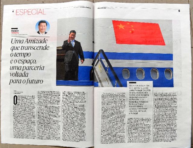在对葡萄牙进行国事访问前夕,习近平主席在葡萄牙《新闻日报》发表题为《跨越时空的友谊 面向未来的伙伴》的署名文章。(新华社记者章亚东、孙奕摄)