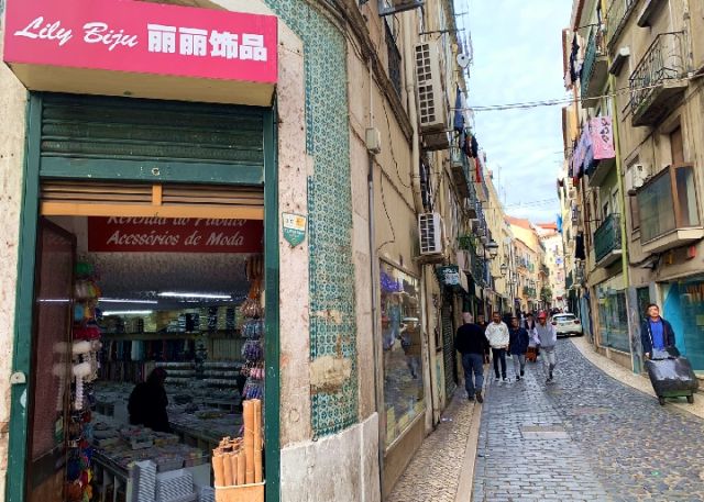 位于里斯本市中心附近的的华人商铺街区。(新华社记者孙奕摄)