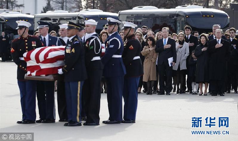 美国前总统老布什遗体运抵安德鲁斯空军基地