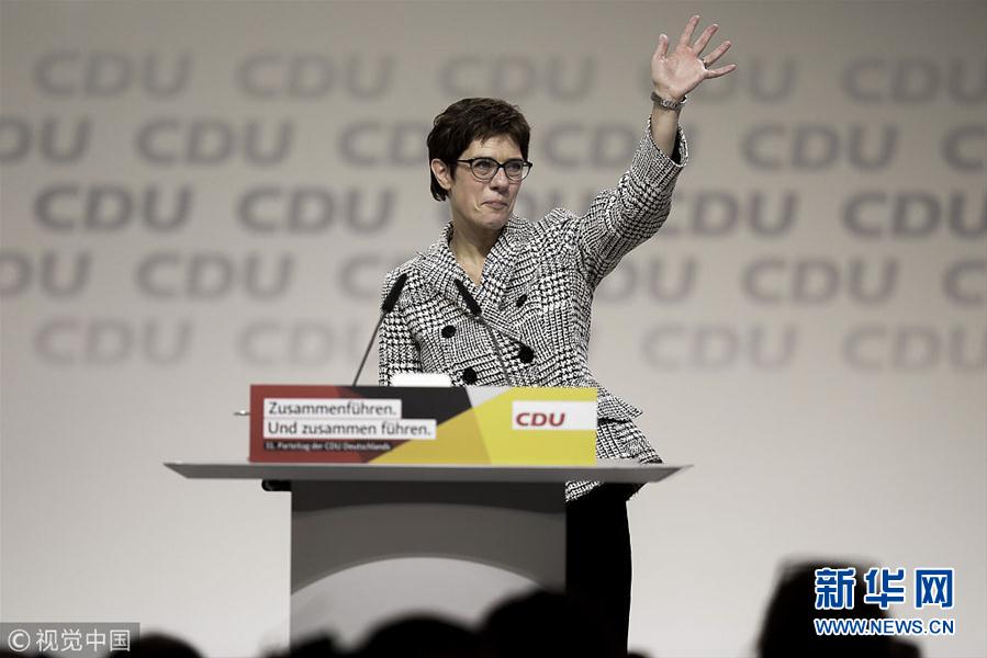 当地时间2018年12月7日,德国汉堡,德国基督教民主联盟(基民盟)全国代表大会召开。根据会议选举结果,基民盟秘书长安妮格雷特·克兰普-卡伦鲍尔接替德国总理安格拉·默克尔,成为新一届基民盟主席。 (图片来源:视觉中国)