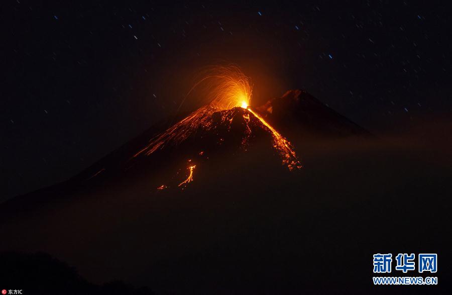 意大利埃特纳火山喷发 熔岩喷射犹如烟火绽放