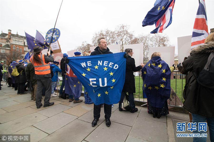 英首相推迟“脱欧”草案议会投票 “留欧派”在议会大厦外示威