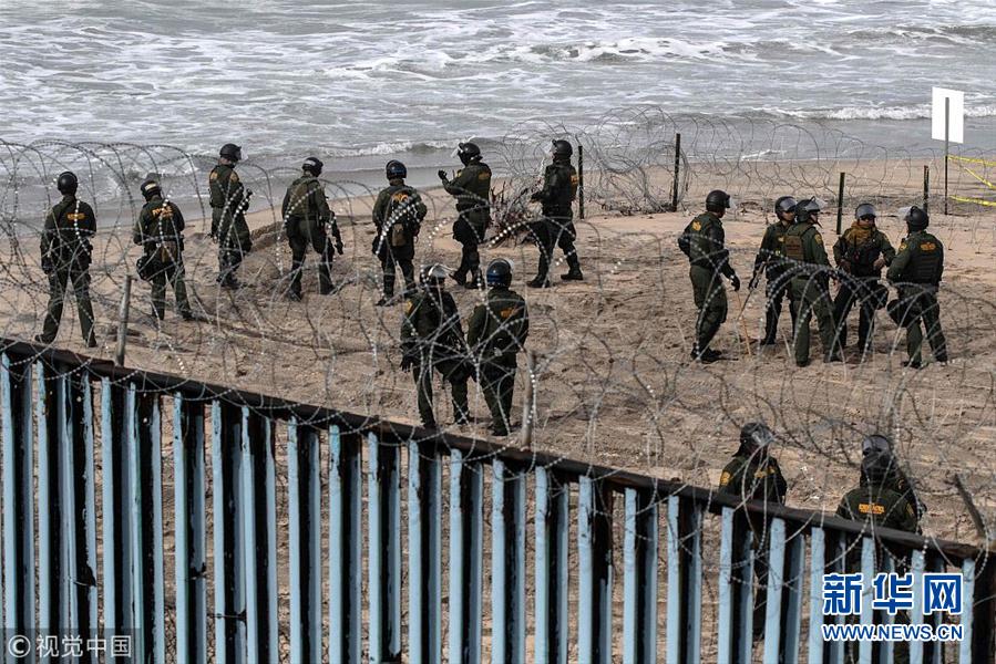 当地时间2018年12月10日,墨西哥蒂华纳,民众在美墨边境集会支持“大篷车”移民,部分民众遭警方逮捕。(图片来源:视觉中国)