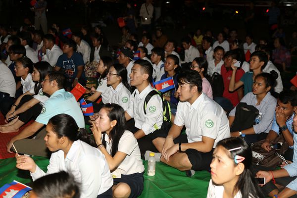 图为柬埔寨观众在参加“露天电影院”活动。新华网发(图片由中柬友谊台提供)