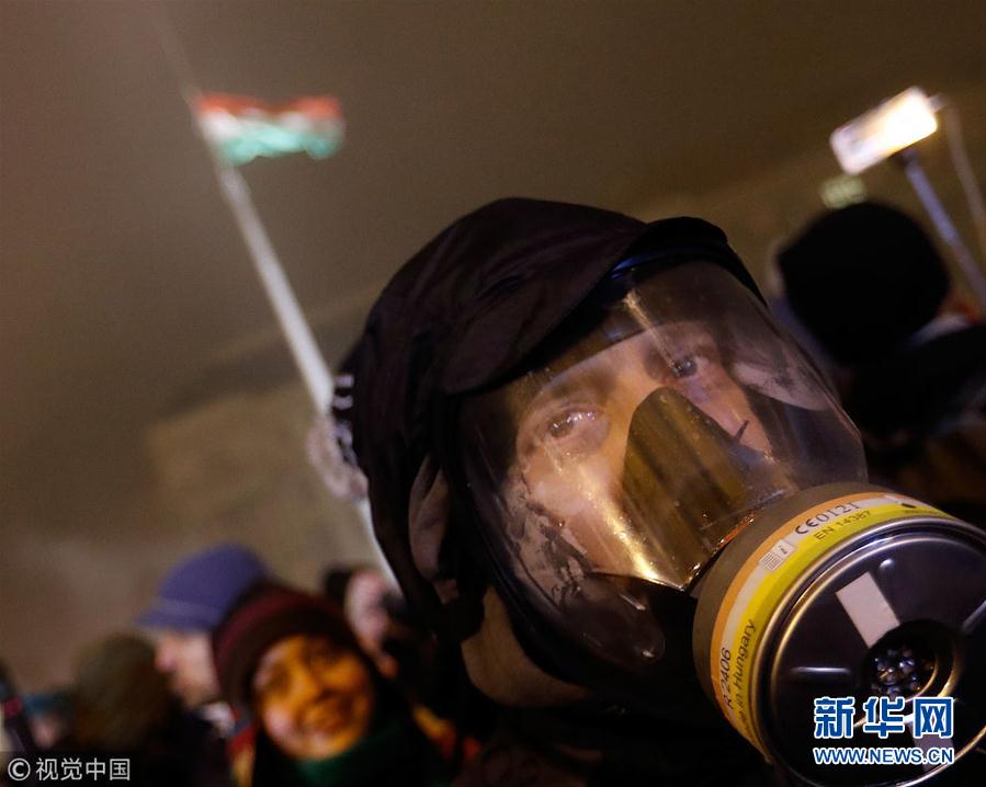 2018年12月13日,匈牙利布达佩斯,当地民众集会示威,抗议新劳动法,与警察对峙。(图片来源:视觉中国)
