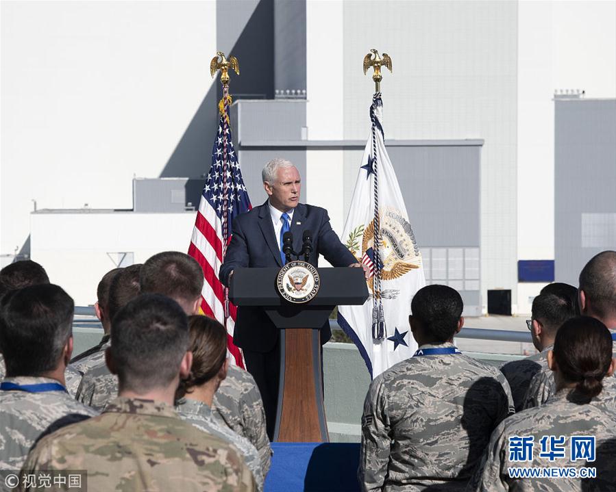 当地时间2018年12月18日,美国佛罗里达州,美国副总统彭斯在肯尼迪航天中心宣布:总统特朗普已向国防部正式签署命令,成立美国太空司令部。彭斯称,这是为了更好地组织和推进军队在太空中的大规模行动。(图片来源:视觉中国)