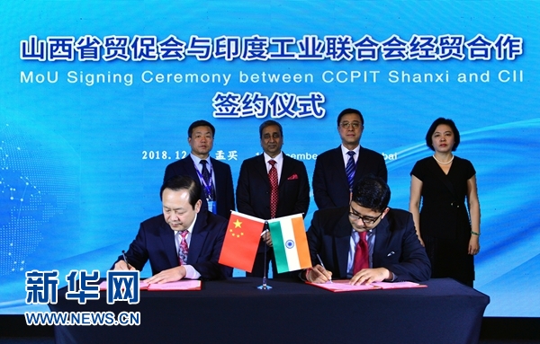 随后,中国国际贸易促进委员会山西省委员会与印度工业联合会签署了合作协议。中印双方70多家企业进行了洽谈。