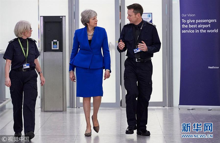 特雷莎·梅造访伦敦希思罗机场 视察指挥中心
