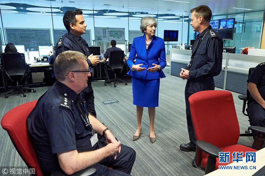特雷莎·梅造访伦敦希思罗机场 视察指挥中心