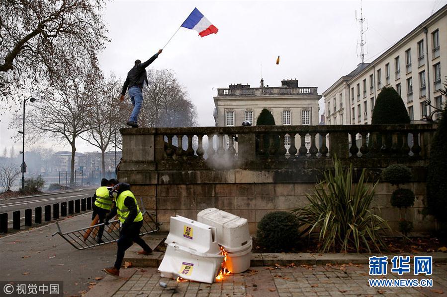 2018年12月22日,法国,“黄背心”示威持续。法国的“黄背心”运动最初是为了抗议计划中的燃料涨价,但后来演变成大规模抗议总统政策和管理方式的示威运动。(图片来源:视觉中国)