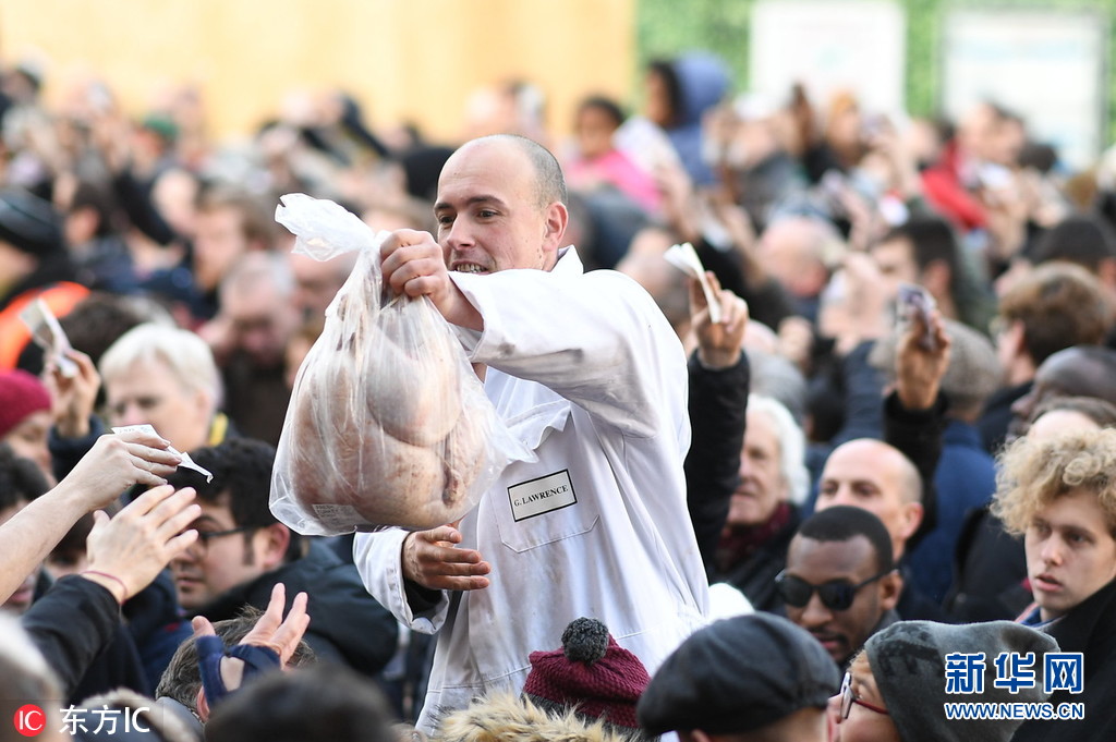伦敦一市场举行圣诞肉食拍卖活动 引民众抢购