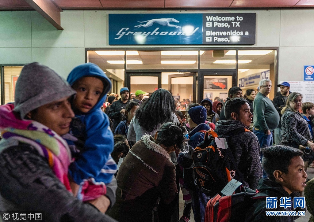 当地时间2018年12月23日,美国埃尔帕索,大约200名中美移民在埃尔帕索市寻求庇护时被移民和海关执法局拦截。来自天使之家和其他地方教堂的志愿者前来帮助他们,并找到地方安置他们过夜。(图片来源:视觉中国)