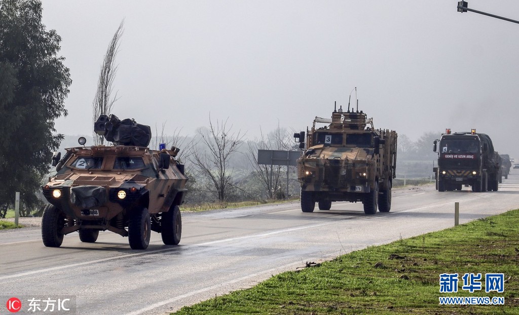 当地时间2018年12月24日,土耳其哈塔伊,土耳其装甲车被派往叙利亚边境的基利斯地区,增援边境部队。(图片来源:东方IC)