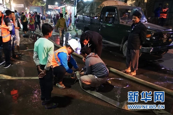 中国中铁孟加拉国帕德玛大桥铁路连接线项目部工作人员在现场参与组织救援工作。(中国中铁项目部提供)