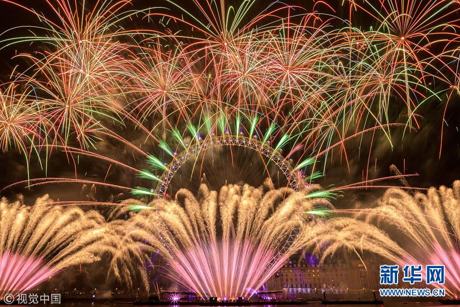 实拍伦敦跨年烟花表演 绚丽光影点亮夜空